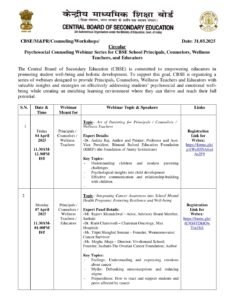 CBSE का मुख्य उद्देश्य छात्रों के समग्र विकास और उनके कल्याण को बढ़ावा देना है। इसी लक्ष्य को ध्यान में रखते हुए सीबीएसई छात्रों के मानसिक और भावनात्मक स्वास्थ्य को मजबूत करने के लिए परामर्श वेबिनार आयोजित करेगा। इन वेबिनार का मकसद है कि स्कूलों में सकारात्मक और सहयोगपूर्ण वातावरण तैयार हो सके।