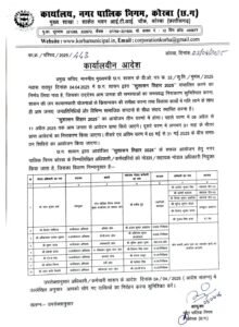 छ.ग. शासन द्वारा आयोजित “सुशासन तिहार 2025” के सफल आयोजन हेतु नगर पालिक निगम कोरबा के निम्नलिखित अधिकारी / कर्मचारियों को नोडल / सहायक नोडल अधिकारी नियुक्त किया जाता है, जिसका विवरण निम्नानुसार है:-
