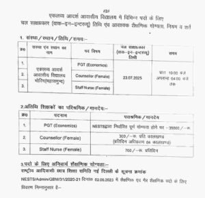 एकलव्य आदर्श आवासीय विद्यालय हेतु रिक्त पदों का विवरण निम्नानुसार हैः-