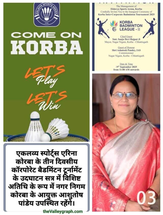 कोरबा। आज सुबह 11:00 बजे से कोरबा बैडमिंटन लीग के दूसरे सीजन (KBL- II) का शुभारंभ होगा। बतौर मुख्य अतिथि नगर निगम, कोरबा की महापौर श्रीमती संजू देवी राजपूत मनोरंजन गृह, नगर पालिक निगम कॉलोनी, कोसाबाड़ी, कोरबा स्थित एकलव्य स्पोर्ट्स एरिना में आयोजित तीन दिवसीय कॉरपोरेट बैडमिंटन टूर्नामेंट का उदघाटन करेंगी। विशिष्ट अतिथि के रूप में नगर निगम कोरबा के आयुक्त आशुतोष पांडेय उपस्थित रहेंगे। एकलव्य स्पोर्ट्स एरिना कोरबा के अध्यक्ष डॉ संजय अग्रवाल ने आग्रह करते हुए कहा कि हम प्रतिस्पर्धा और खेल भावना के एक रोमांचक दिन को देखने के लिए शहर के खेल प्रेमियों की अधिक से अधिक संख्या में उपस्थिति की प्रतीक्षा कर रहे हैं।