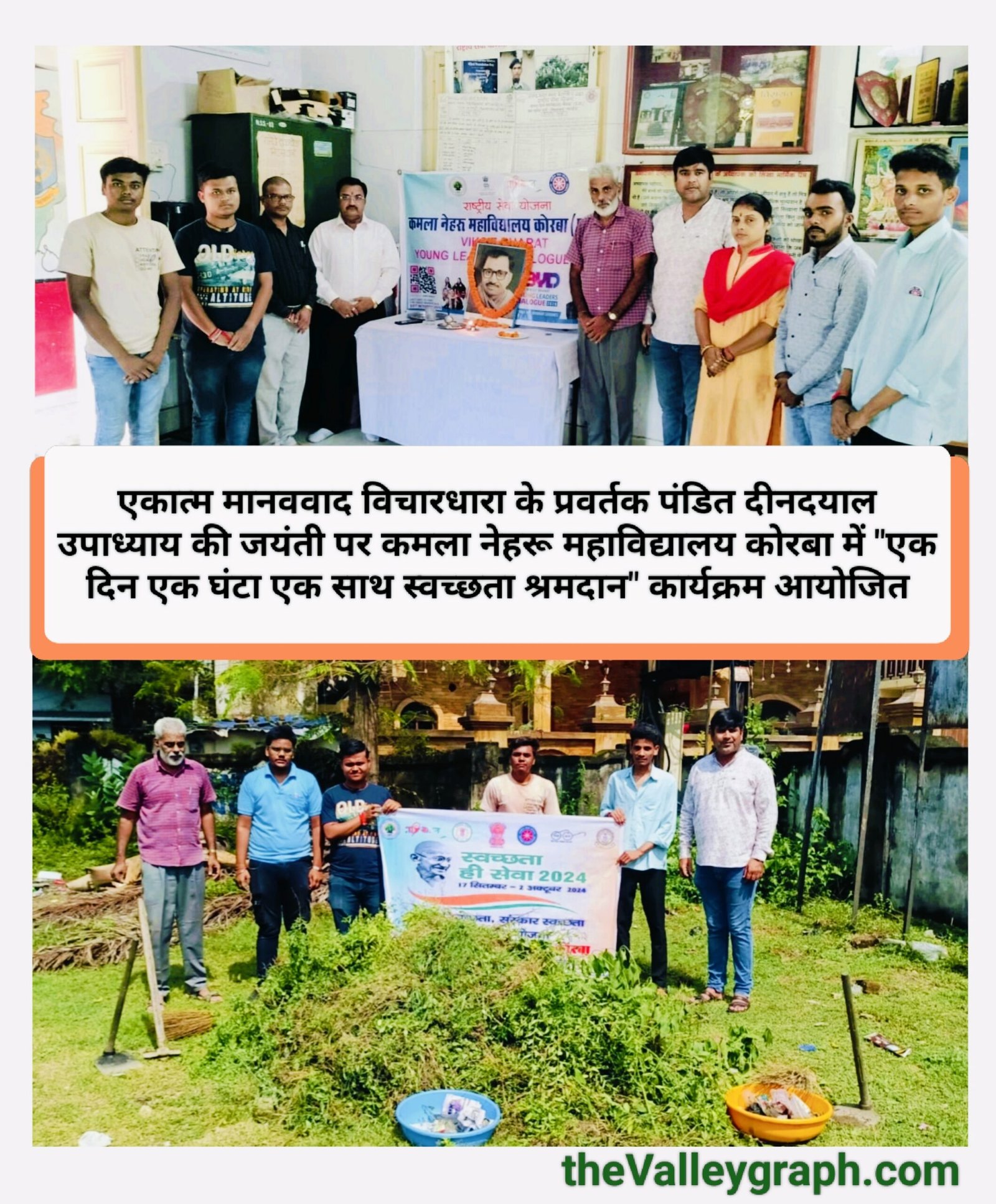 कार्यक्रम के दौरान रासेयो जिला संगठक वायके तिवारी, वरिष्ठ स्वयंसेवक देवांश कुमार, किशोर चौहान, यशवंत दीक्षित, प्रियांशु मिश्रा आदि ने श्रमदान में स्वस्फूर्त भाग लिया। इसके पूर्व महाविद्यालय के प्राचार्य डॉ. प्रशांत बोपापुरकर ने पंडित दीनदयाल उपाध्याय की प्रतिमा पर माल्यार्पण व दीप प्रज्वलित उन्हें नमन किया।