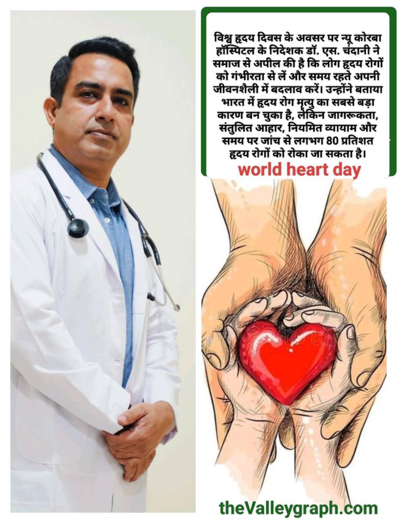 कोरबा। विश्व हृदय दिवस के अवसर पर न्यू कोरबा हॉस्पिटल के निदेशक डॉ. एस. चंदानी ने समाज से अपील की है कि लोग हृदय रोगों को गंभीरता से लें और समय रहते अपनी जीवनशैली में बदलाव करें।