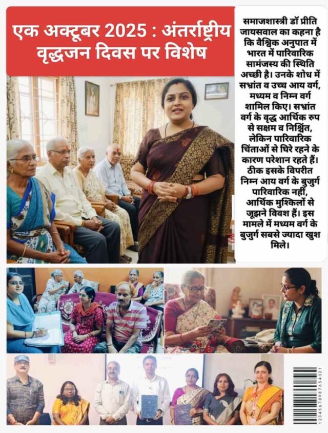 वृद्धजनों की सामाजिक व आर्थिक स्थिति पर कोरबा जिले के विशेष संदर्भ में समाजशास्त्री डॉ प्रीति जायसवाल की नई रिसर्च..,