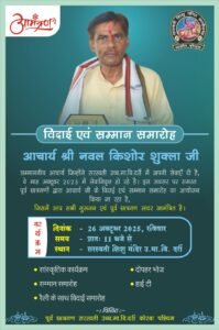 पूर्व छात्र गणों ने आग्रह किया है कि विद्यालय सम्मानित गुरुजन, उनके परिजन, पूर्व एवं वर्तमान में अध्ययनरत विद्यार्थी और उनके पालक, आचार्य श्री शुक्ला के विदाई समारोह में अधिक से अधिक संख्या में सम्मिलित होकर कार्यक्रम को सफल बनाने में योगदान प्रदान करें।