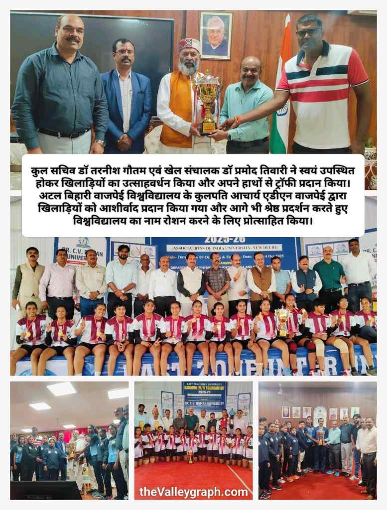 क्षेत्ररक्षण एवं और रेड करके रमन विश्वविद्यालय को बहुत आसानी से 60 के मुकाबले 34 अंक से हराकर ईस्ट जोन कबड्डी चैंपियनशिप का सिरमौर बन अटल बिहारी वाजपेई विश्वविद्यालय बिलासपुर की स्थापना के बाद पहली बार विजेता होने का गौरव प्राप्त किया । यह अटल बिहारी वाजपेई विश्वविद्यालय का श्रेष्ठ प्रदर्शन रहा है तीसरी बार अखिल भारतीय अंतर विश्वविद्यालय प्रतियोगिता के लिए टीम ने क्वालीफाई की है जबकि दो बार खेलो इंडिया खेलो विश्वविद्यालय के गेम्स में प्रतिनिधित्व कर चुके हैं इस शानदार प्रतियोगिता को वरिष्ठ एन आई एस कोच दिल कुमार राठौर साइन सेंटर बहतराई स्टेडियम बिलासपुर के खेलो इंडिया खेलो प्रशिक्षण केंद्र के कोच हैं जो लगातार विश्वविद्यालय में 4 वर्षों से प्रशिक्षण का जिम्मेदारी संभाले हुए हैं विगत चार वर्षों से खिलाड़ियों को मोटिवेशन के साथ साथ खेल के बरेखीयों को तकनीकी रूप से प्रशिक्षित कर रहे हैं । प्रबंधन का दायित्व विगत कई वर्षों से डॉक्टर बसंत अंचल के मार्गदर्शन में अटल बिहारी वाजपेई विश्वविद्यालय बिलासपुर ऊंचाइयों को छू रही है वर्तमान में टीम प्रबंधन के रूप में डॉक्टर सुरेश सिंह पवार जी ने प्रतियोगिता का प्रतिनिधित्व किया इस प्रतियोगिता को देखने के लिए विश्वविद्यालय के