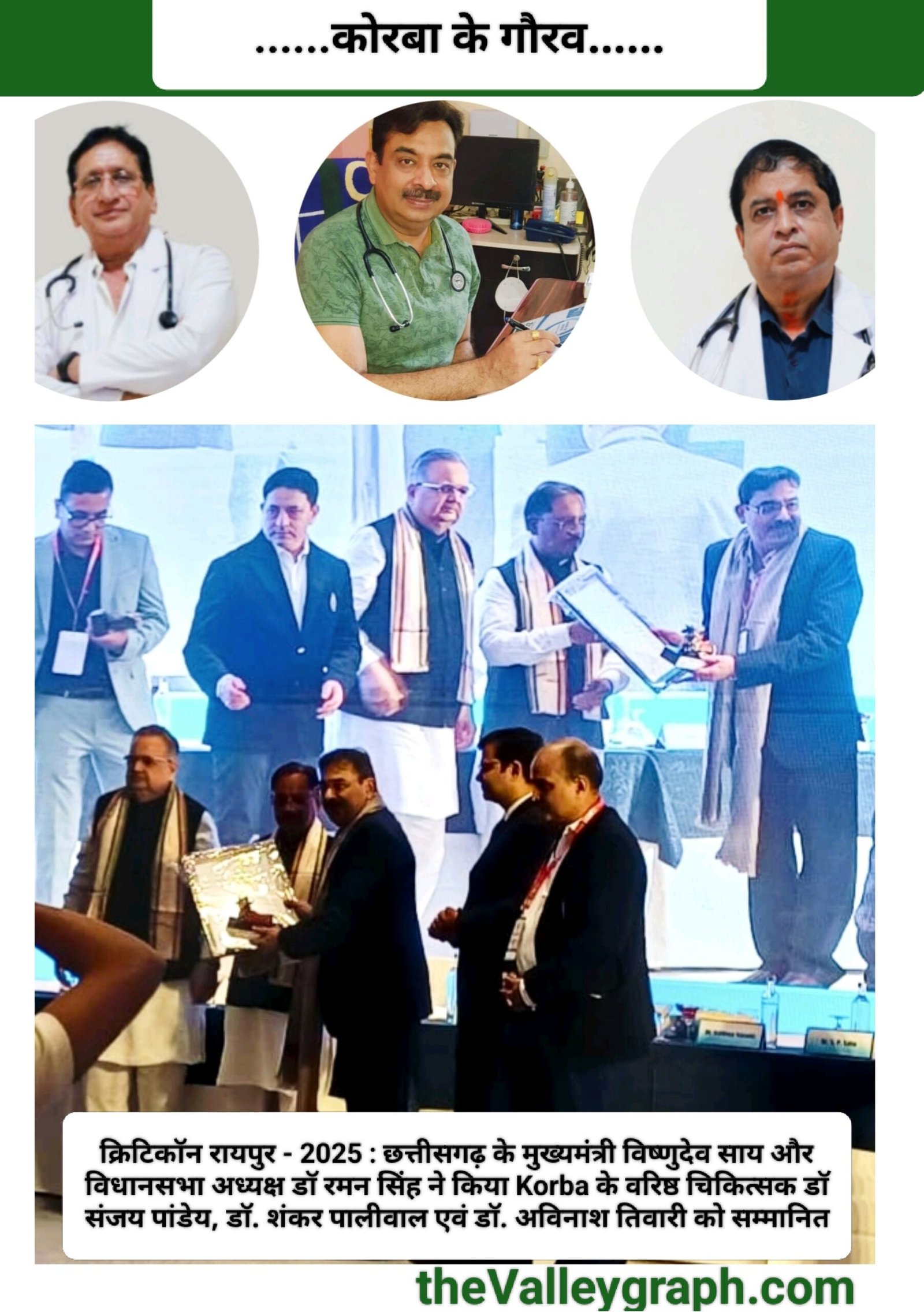 क्रिटिकॉन रायपुर 2025 : CM विष्णुदेव साय एवं विधानसभा अध्यक्ष डॉ रमन सिंह ने कोरबा के चिकित्सकों को किया सम्मानित।