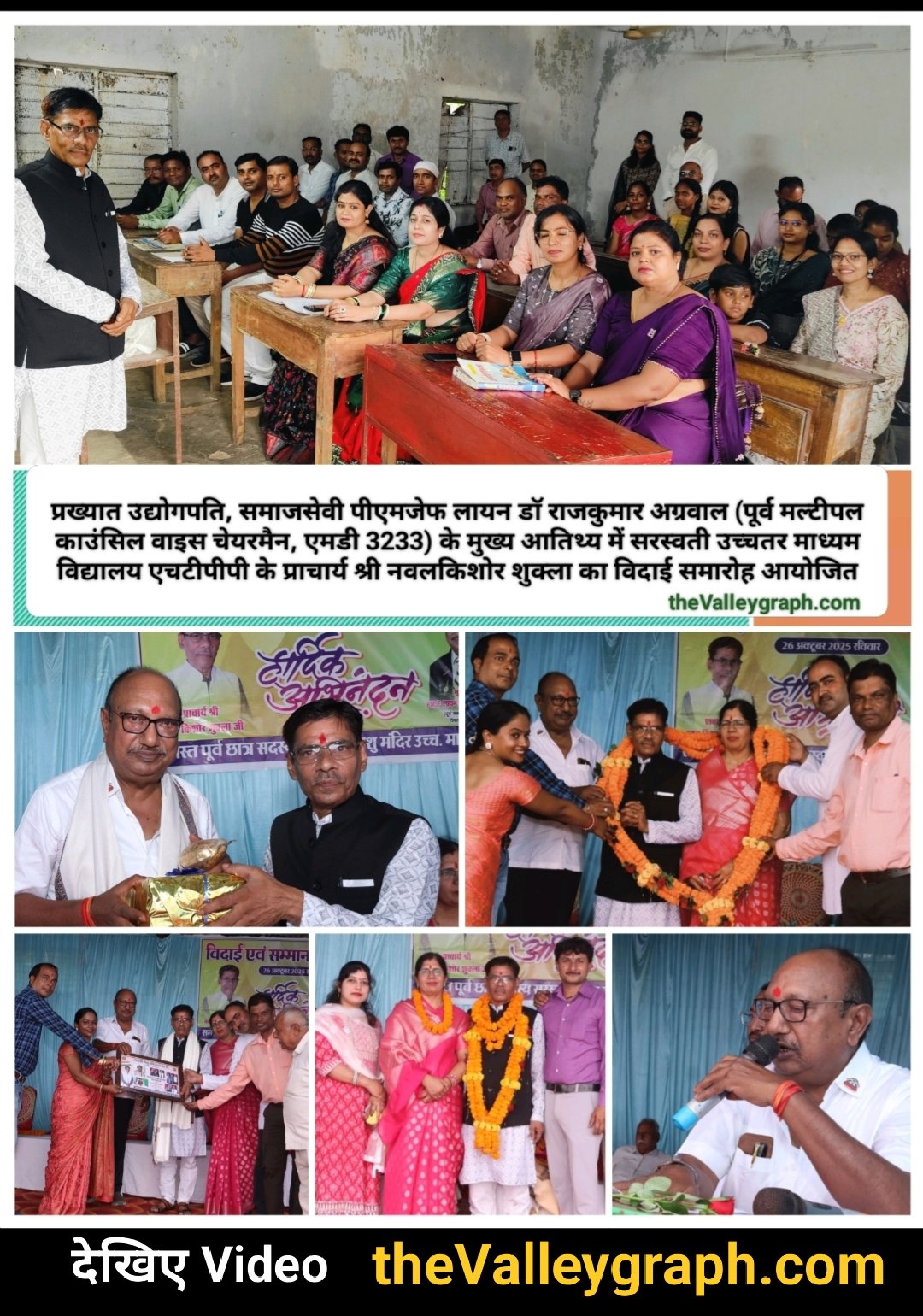 उद्योगपति, समाजसेवी डाॅ राजकुमार अग्रवाल के मुख्य आतिथ्य में सरस्वती उच्चतर माध्यमिक विद्यालय HTPP के प्राचार्य नवलकिशोर शुक्ला का विदाई समारोह आयोजित।