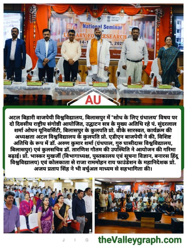 अटल बिहारी वाजपेयी विश्वविद्यालय, बिलासपुर में “शोध के लिए ग्रंथालय’ विषय पर दो दिवसीय राष्ट्रीय संगोष्ठी आयोजित
