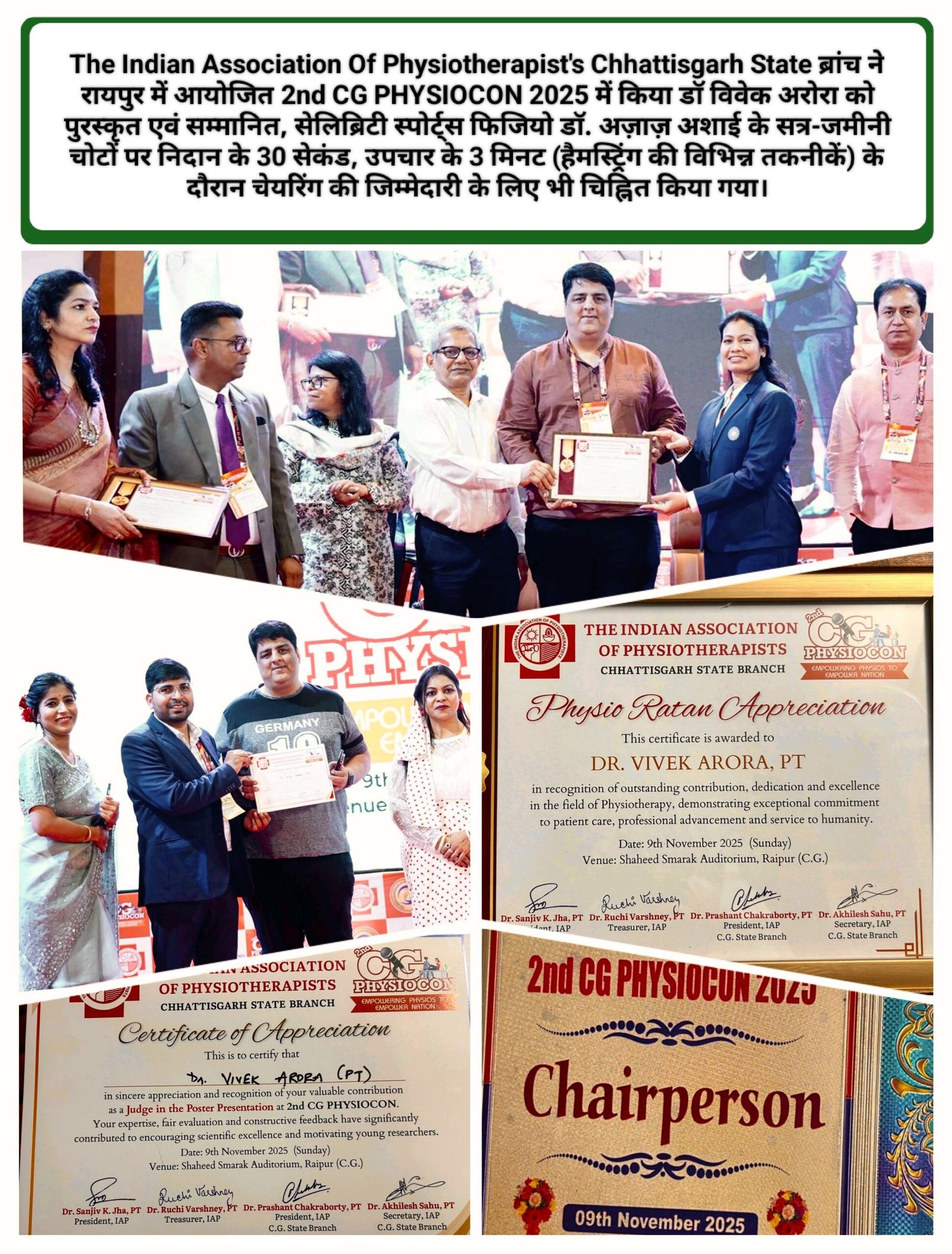 The Indian Association Of Physiotherapist’s Chhattisgarh State ब्रांच ने रायपुर में आयोजित 2nd CG PHYSIOCON 2025 में किया सम्मानित