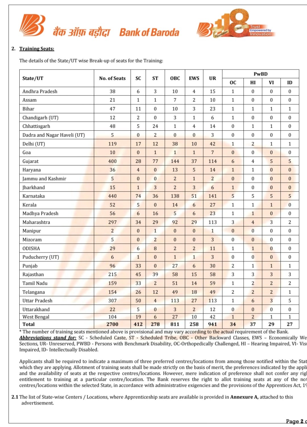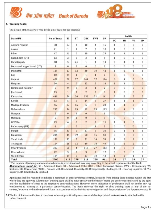 बैंक में अप्रेंटिसशिप के लिए आवेदन करने के इच्छुक उम्मीदवारों के लिए विस्तृत अप्रेंटिसशिप अधिसूचना बैंक की वेबसाइट (https://bankofbaroda.bank.in/) और बीएफएसआई एसएससी की वेबसाइट (https://bfsissc.com) पर उपलब्ध होगी।