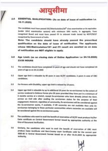 अभ्यर्थी मान्यता प्राप्त बोर्ड से न्यूनतम 50 प्रतिशत अंकों के साथ दसवीं कक्षा पास होना चाहिए। इसके साथ ही अभ्यर्थी संबंधित ट्रेड में आईटीआई भी होना चाहिए।