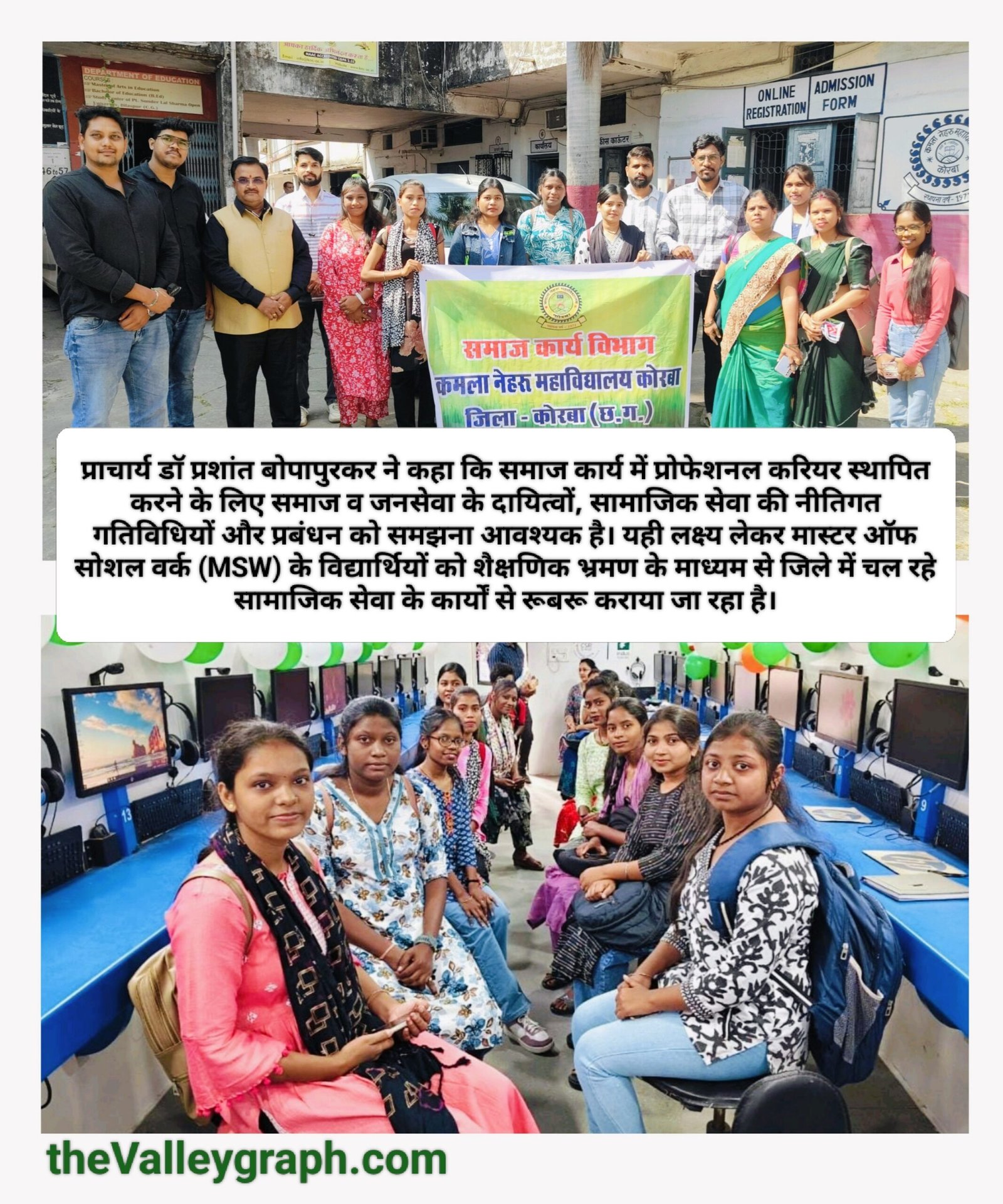 कोरबा। समाज में पीड़ित लोगों का दर्द और राहत की राह समझने कमला नेहरू महाविद्यालय कोरबा के एमएसडब्ल्यू के स्टूडेंट्स बेबअपना घर सेवा आश्रम का भ्रमण किया। वहां उन्होंने समाज कार्य की मूल भावना को प्रत्यक्ष रूप से देखा और सेवा के लिए जीवन समर्पित करने वाले युवा स्वयंसेवियों की जिम्मेदारियों से भी रूबरू हुए।