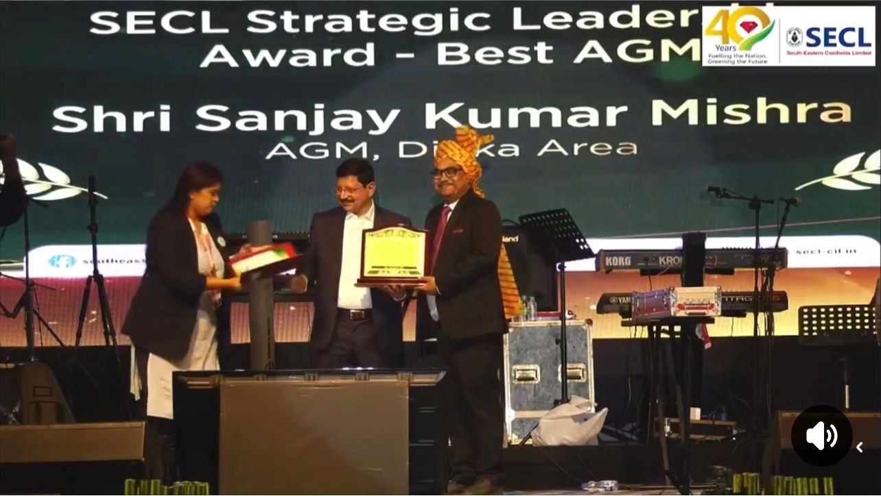 कोरबा। साउथ ईस्टर्न कोल फील्ड लिमिटेड दीपका क्षेत्र के क्षेत्रीय महाप्रबंधक संजय कुमार मिश्रा उत्कृष्ट कार्य के लिए सम्मानित हुए हैं। उन्हें एसईसीएल के 41वें स्थापना दिवस के अवसर पर एसईसीएल रणनीतिक नेतृत्व पुरस्कार श्रेणी में सर्वश्रेष्ठ क्षेत्रीय महाप्रबंधक के रूप में सम्मानित किया गया।