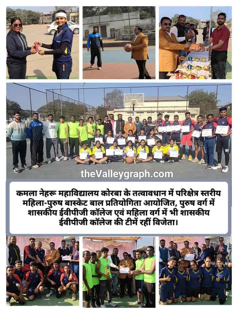 उच्च शिक्षा विभाग की गाइडलाइन अनुरूप आयोजित प्रतियोगिता में कुल तीन महाविद्यालयों की महिला-पुरुष बास्केट बाल टीम ने भाग लिया। इनमें जिले की अग्रणी उच्च शिक्षा संस्था शासकीय ईवीपीजी कॉलेज, कमला नेहरू कॉलेज एवं मिनीमाता कन्या महाविद्यालय की टीमों ने हिस्सा लिया। उद्घाटन कार्यक्रम की अध्यक्षता कर रहे कमला नेहरू महाविद्यालय कोरबा के प्राचार्य डॉ प्रशांत बोपापुरकर ने बाल को बास्केट में डालकर स्पर्धा का शुभारंभ किया। उन्होंने खिलाड़ी विद्यार्थियों को प्रेरित करते हुए कहा कि आप सभी अच्छे खिलाड़ी बनें और अपने साथियों को भी किसी न किसी पसंदीदा खेल से जुड़ने के लिए प्रोत्साहित करें। विशिष्ट अतिथि रहे जिले के वरिष्ठ क्रीड़ाधिकारी एवं ईवीपीजी कॉलेज के खेल प्रभारी डॉ बोगीशंकर राव ने कहा कि खिलाड़ी भावना और पूरे उत्साह से खेलें, विश्वविद्यालय की टीम में जगह हासिल करें। कार्यक्रम में प्रमुख रूप से स्व प्यारेलाल कंवर शासकीय महाविद्यालय भैसमा के क्रीड़ाधिकारी एवं प्रतियोगिता के सिलेक्टर रविन्द्र ध्रुव, सेलेक्टर, मिनीमाता कॉलेज की खेल प्रभारी अनिमा तिर्की, कमला नेहरू कॉलेज के खेल प्रभारी टीवी नरसिम्हम, बीके वर्मा, बृजेश तिवारी, डॉ सुनील तिवारी, ओपी साहू, अनिल राठौर, मीडिया पर्सन विकास पाण्डेय, निर्णायकगणों में हर्ष साहू, हिरबस साहू, प्रवीण कुमार, एकेडमी के प्रशासनिक अधिकारी दीपक साहू उपस्थित रहे।