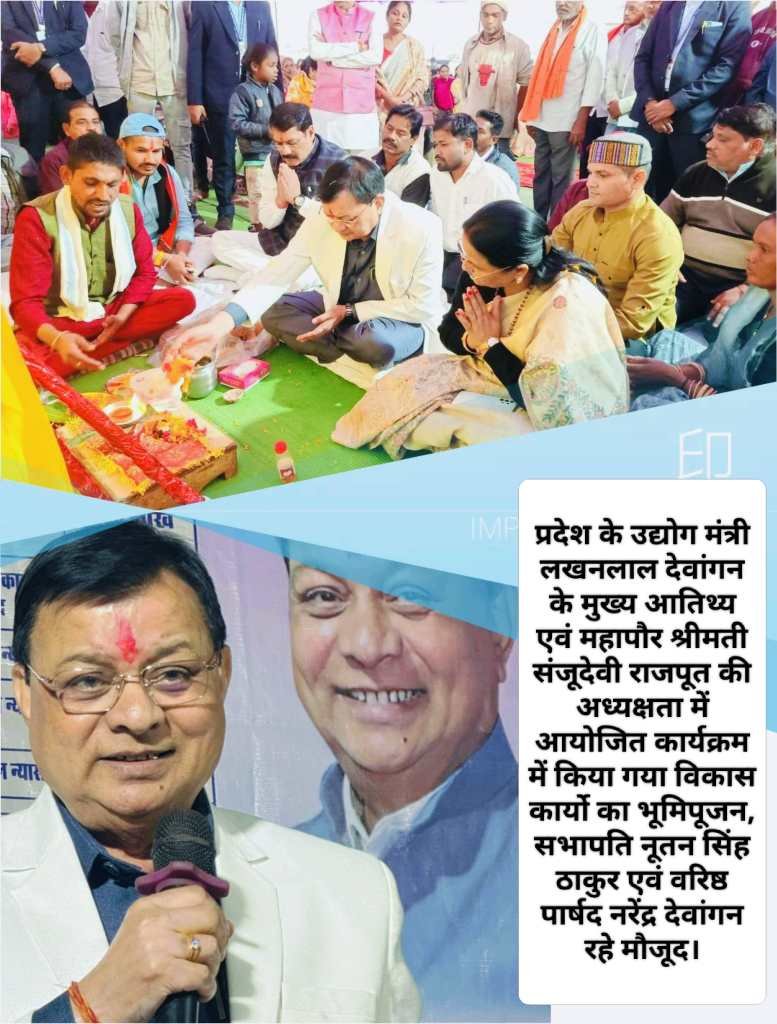 प्रदेश के उद्योग मंत्री लखनलाल देवांगन के मुख्य आतिथ्य एवं महापौर श्रीमती संजूदेवी राजपूत की अध्यक्षता में आयोजित कार्यक्रम में किया गया विकास कार्यो का भूमिपूजन