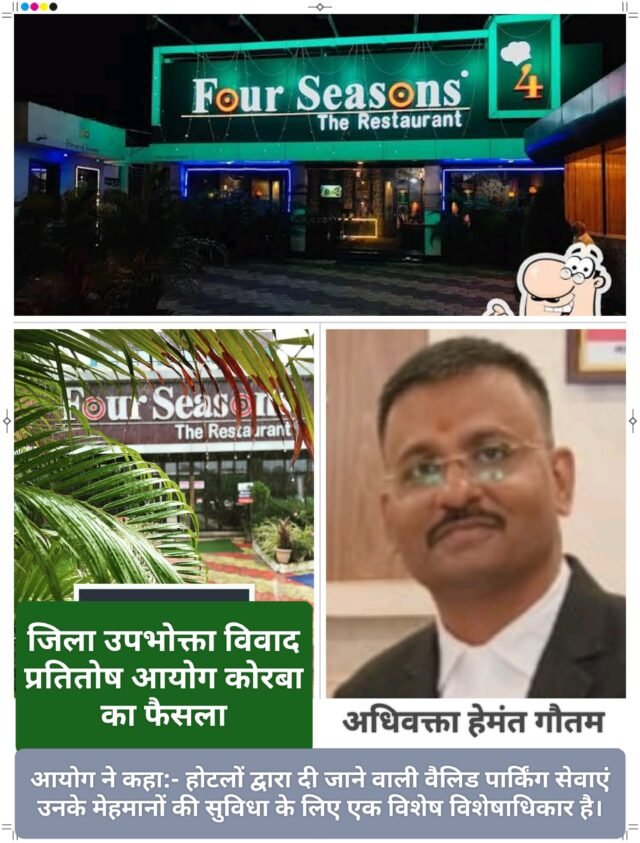 कोरबा। डिनर पर आए गेस्ट से वादे के विपरीत सेवा में कमी साबित होने पर जिला उपभोक्ता विवाद प्रतितोष आयोग कोरबा ने होटल फोर सीजन द रेस्टोरेंट पर 17 हजार का जुर्माना लगाया है। होटल द्वारा बताई गई पार्किंग पर खड़ी की गई गाड़ी की हैडलाइट क्षतिग्रस्त हो गई थी। रेस्टोरेंट संचालक ने पहले मरम्मत खर्च देने का वादा किया पर बाद में मुकर गया।