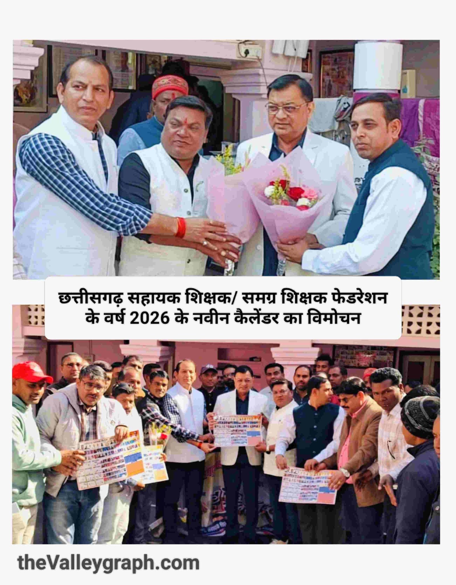 कोरबा। उद्योग एवं श्रम मंत्री लखनलाल देवांगन ने छत्तीसगढ़ सहायक शिक्षक/ समग्र शिक्षक फेडरेशन के कैलेंडर का विमोचन किया। कोहड़िया स्थित निज निवास कार्यालय में छत्तीसगढ़ सहायक शिक्षक/ समग्र शिक्षक फेडरेशन के वर्ष 2026 के नवीन कैलेंडर का विमोचन कर सभी को नववर्ष की बधाई एवं शुभकामनाएं प्रदान की। इस अवसर पर फेडरेशन के तरुण प्रकाश वैष्णव, विपिन यादव, विनोद सांडे, लव चौहान, चंद्रकांत पांडे सहित अधिकारी एवं कर्मचारी प्रमुख रुप से उपस्थित रहे।
