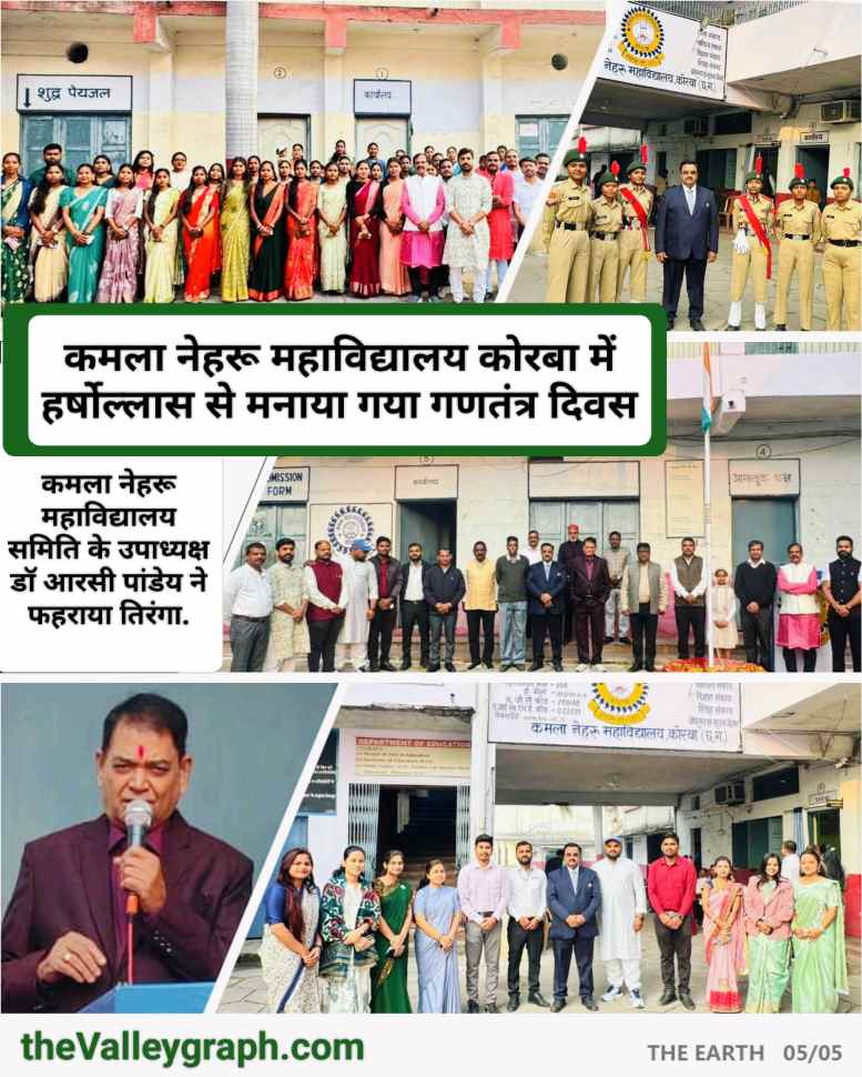 यह बातें सोमवार को आयोजित गणतंत्र दिवस समारोह के अवसर पर कमला नेहरू महाविद्यालय समिति के उपाध्यक्ष डॉ आरसी पांडेय ने कहीं। बतौर मुख्य अतिथि डॉ पांडेय ने तिरंगा फहराया। महाविद्यालय प्रांगण में 26 जनवरी को राष्ट्रीय पर्व गरिमामय वातावरण में उत्साहपूर्वक मनाया गया। विद्यार्थियों ने संगीत की मधुर धुन में सुमधुर प्रस्तुति से सभी को भाव विभोर कर दिया। विद्यार्थियों और कनिष्ठ प्राध्यापकों ने वरिष्ठजनों को भारतीय संस्कृति और परंपरा का अनुसरण करते हुए चरण वंदन कर स्वतंत्रता दिवस की शुभकामनाएं दी। इस अवसर पर प्रमुख रूप से ज्योति भूषण प्रताप सिंह विधि महाविद्यालय कोरबा की प्राचार्य डॉ किरण चौहान, कॉलेज के सभी विभागप्रमुख, सहायक प्राध्यापक, कर्मचारीगण एवं छात्र छात्राएं उपस्थित रहे।