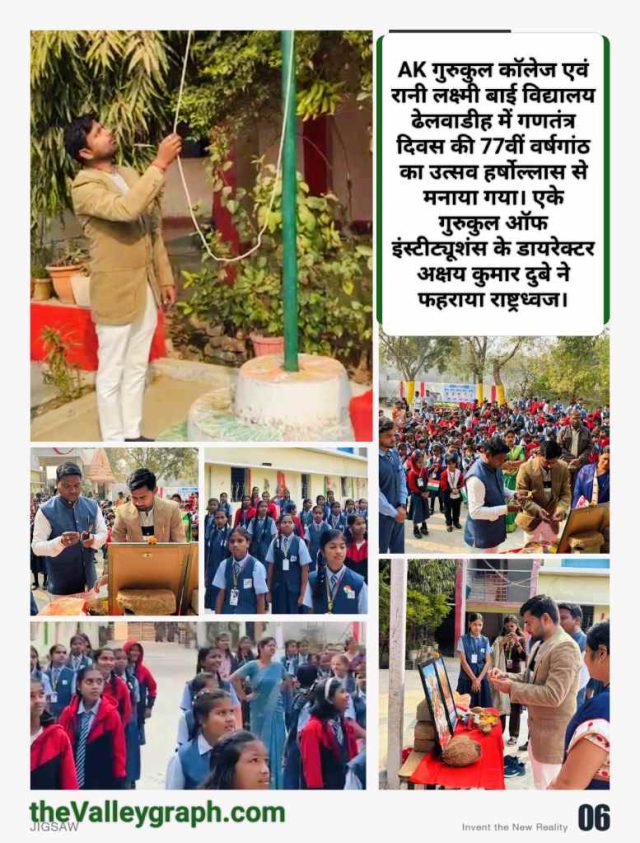 एके गुरुकुल कॉलेज एवं रानी लक्ष्मी बाई विद्यालय ढेलवाडीह में गणतंत्र दिवस की 77वीं वर्षगांठ का उत्सव हर्षोल्लास से मनाया गया। एके गुरुकुल ऑफ इंस्टीट्यूशंस के डायरेक्टर अक्षय कुमार दुबे ने फहराया राष्ट्रध्वज।