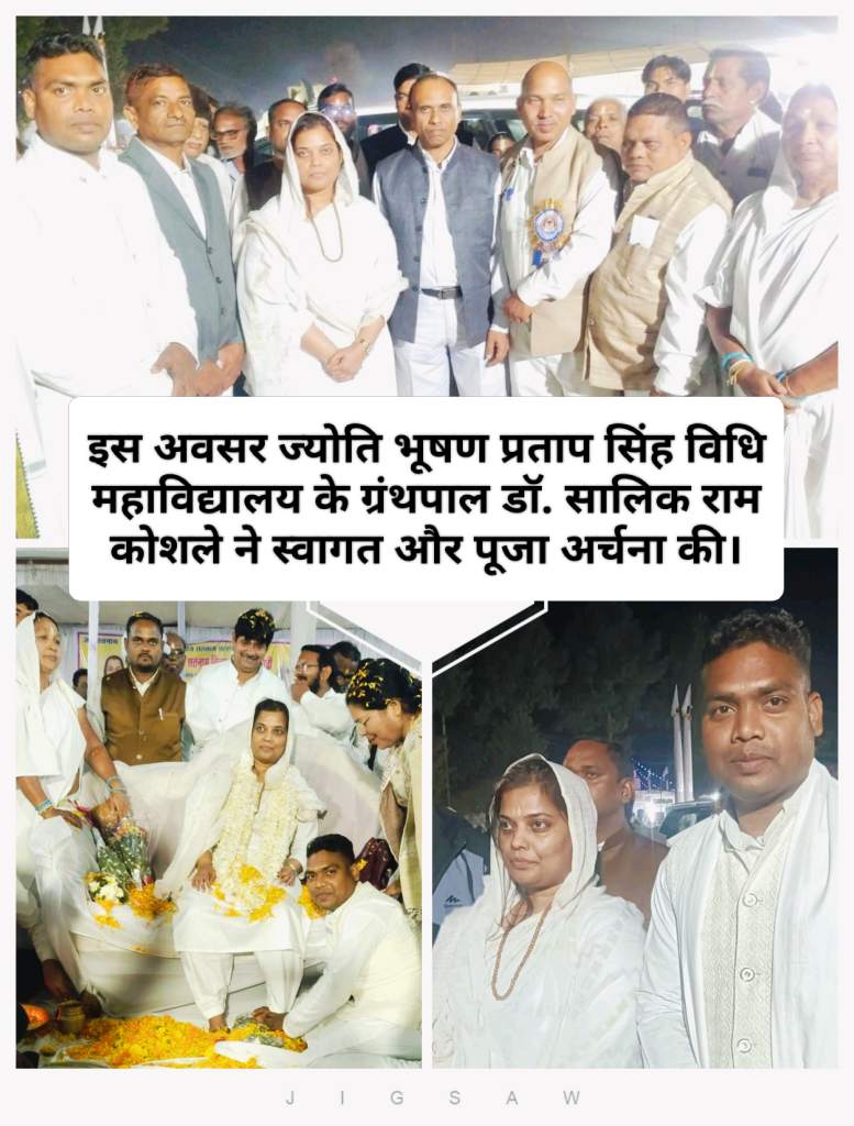 इस अवसर ज्योति भूषण प्रताप सिंह विधि महाविद्यालय के ग्रंथपाल डॉ. सालिक राम कोशले ने स्वागत और पूजा अर्चना की।
