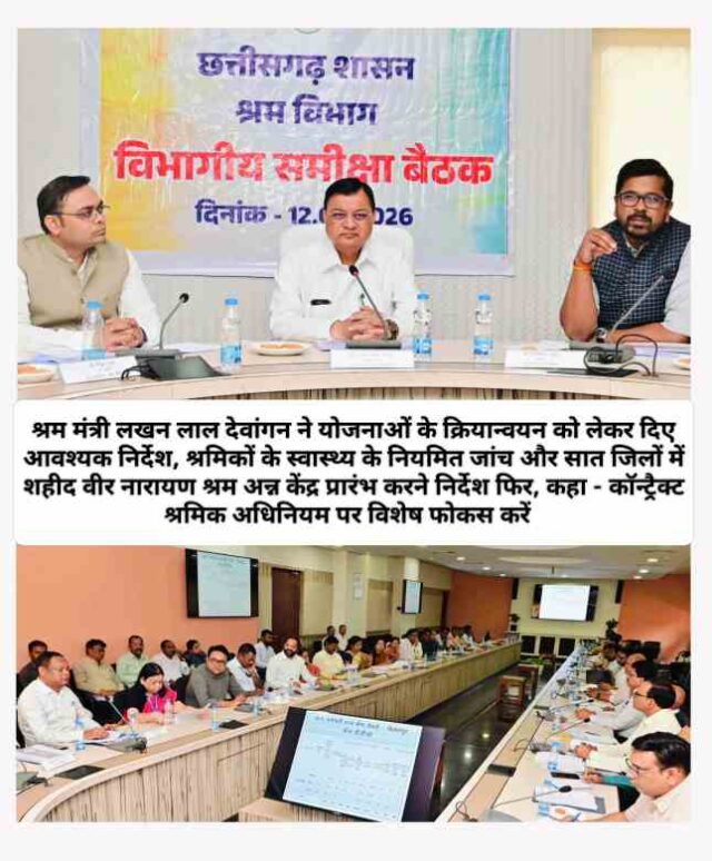 योजनाओं के क्रियान्वयन को लेकर दिए आवश्यक निर्देश, श्रमिकों के स्वास्थ्य के नियमित जांच और सात जिलों में शहीद वीर नारायण श्रम अन्न केंद्र प्रारंभ करने निर्देश।
