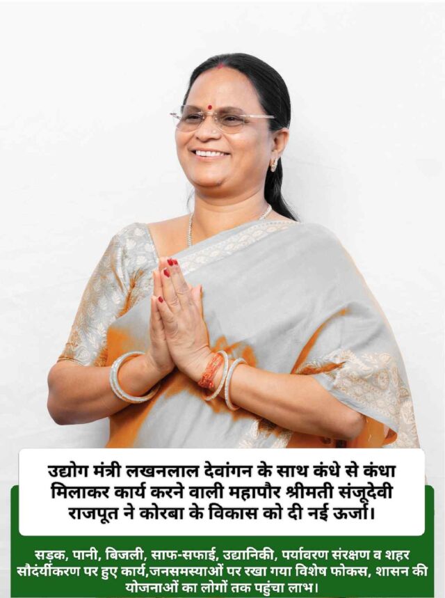 उद्योग मंत्री लखनलाल देवांगन के साथ कंधे से कंधा मिलाकर कार्य करने वाली महापौर श्रीमती संजूदेवी राजपूत ने कोरबा के विकास को दी नई ऊर्जा, सड़क, पानी, बिजली, साफ-सफाई, उद्यानिकी, पर्यावरण संरक्षण व शहर सौदंर्यीकरण पर हुए कार्य,जनसमस्याओं पर रखा गया विशेष फोकस, शासन की योजनाओं का लोगों तक पहुंचा लाभ।